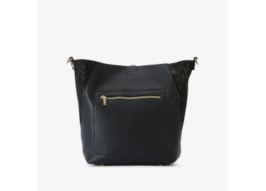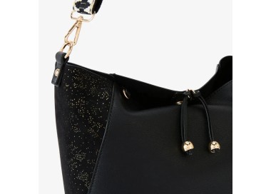 Grand Sac à main Or Rose et Noir - Lollipops Sac noir en simili cuir Bandoulière réglable et amovible Deux anses porté main Rabat de fermeture...
