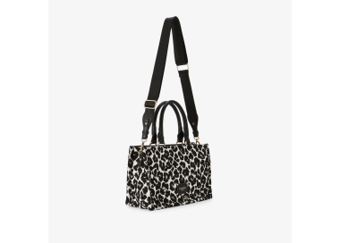 Sac Bandoulière Camel Noir et Rose métallisé en simili cuir grainé - LOLLIPOPS • Bandoulière bicolore réglable et amovible • Rabat avec fermeture...